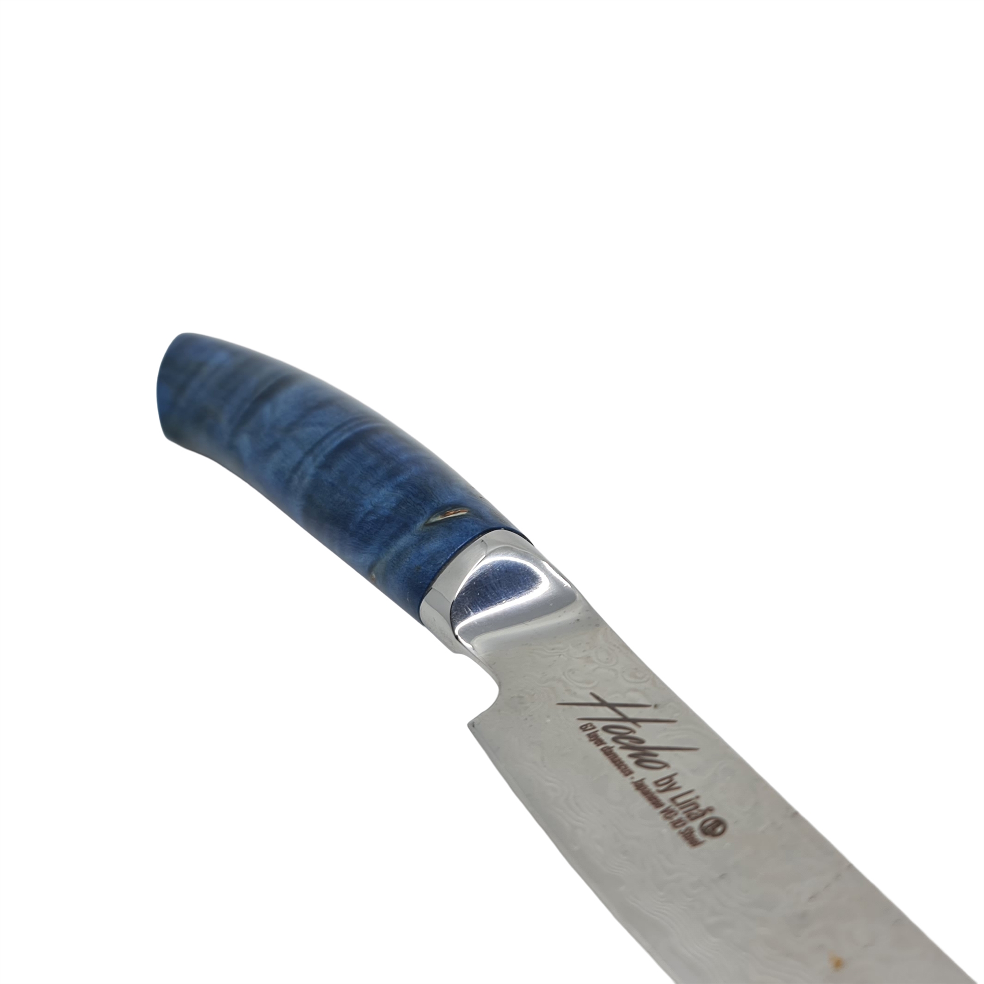 Kjøkkenkniv i damaskusstål med integrert frontholk.