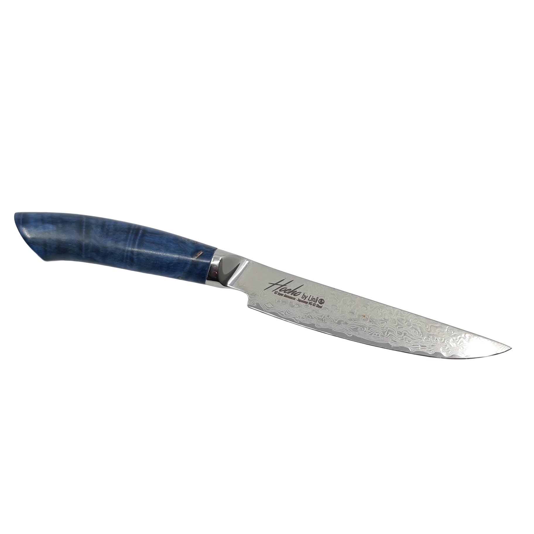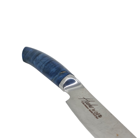 Bladet er laget av et hardt eggstål i det velkjente VG10, omgitt av rustfritt 316L-stål på sidene. Denne kombinasjonen gir et svært robust og slitesterkt blad som samtidig kan slipes ekstremt skarpt og beholder eggen lenge.