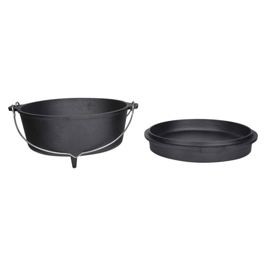 Støpejernskonstruksjonen sørger for at varmen fordeles jevnt utover hele gryten som dermed varmer maten fra alle sider. I tillegg kan gryten også brukes som ovn til å bake brød etc.