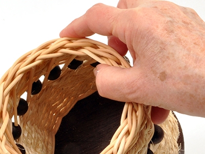 Avslutt med å dra den første buen litt opp og stikk den siste staven inn bak den andre, slik at alle stavene er låst hele veien rundt.