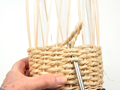 Flett en urtepotteholder eller vase av peddigrør og sisalsnor | Kurvfletting