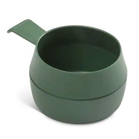Liten praktisk kopp som kan foldes sammen slik at det kan være i lommen.