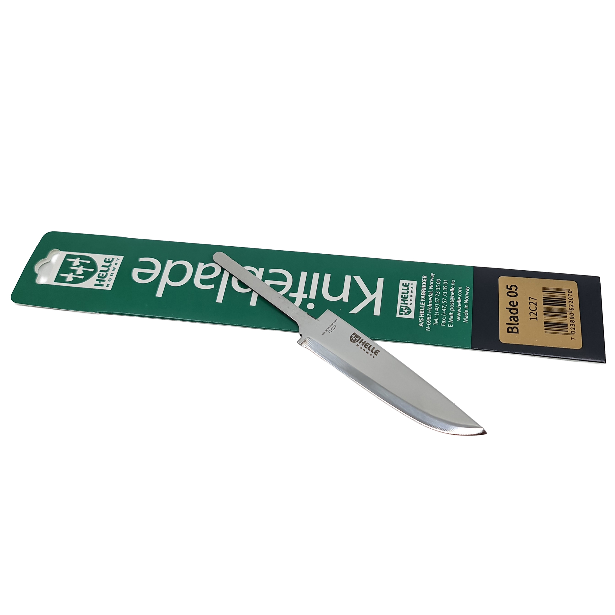 Speiderknivbladet fra Helle Knivfabrikken er et solid og allsidig blad som egner seg spesielt godt til mindre kniver og speiderkniver. Klingen er laget av 12C27 rustfritt stål, kjent for sin gode balanse mellom styrke, skjæreevne og motstand mot korrosjon. Stålet holder skarpheten godt i bruk og er samtidig forholdsvis lett å vedlikeholde og slipe, noe som gjør det godt egnet både for erfarne knivmakere og nybegynnere.