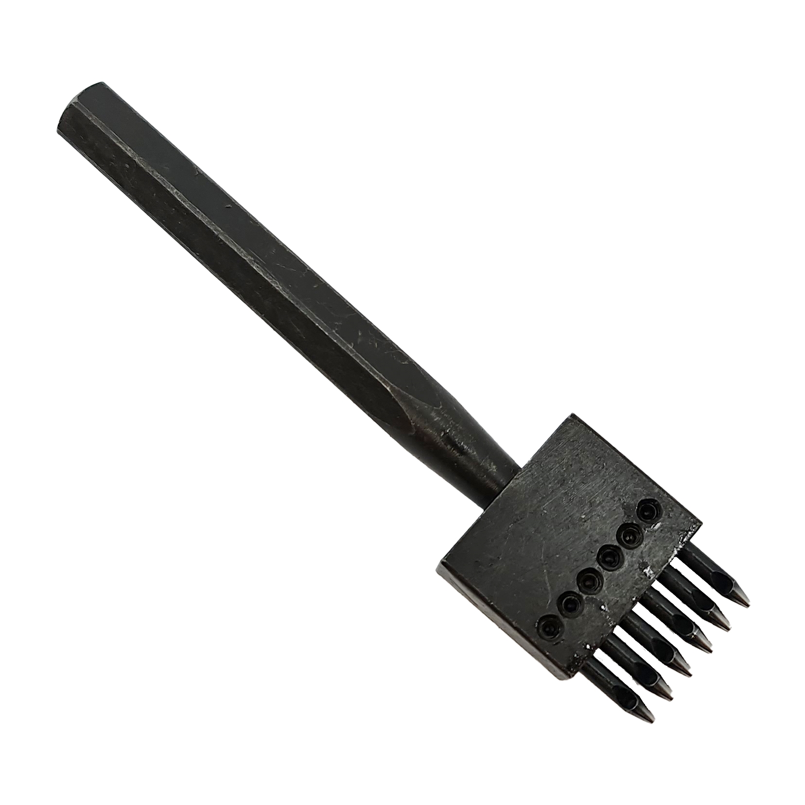 Huggepipene er festet i holderen med en liten skrue som gjør det mulig å ta av en eller flere rør for å få en lengre avstand. Avstanden mellom huggepipene fra midten av hullet til midten av hullet er 4,0 mm hvis alle rørene er montert.