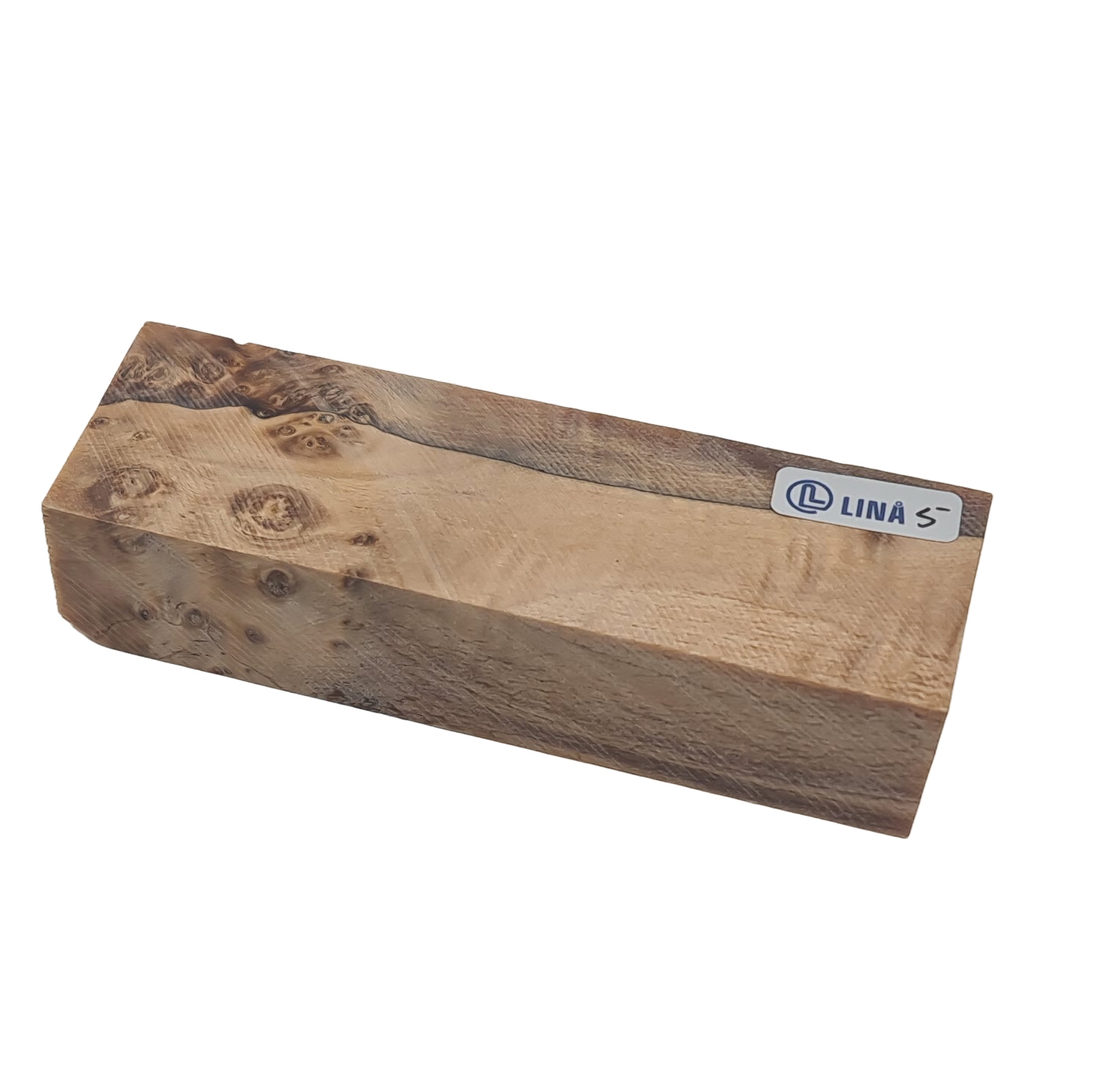 Dette treemnet er laget av nøye utvalgt poppelknute, kjent for sin dekorative og levende årestruktur med naturlige knuter og fargespill. Knuteformasjonene gir hvert emne et helt unikt uttrykk, noe som gjør materialet spesielt godt egnet til prosjekter hvor det visuelle uttrykket er viktig – for eksempel knivskaft, smykker eller eksklusive håndtak.