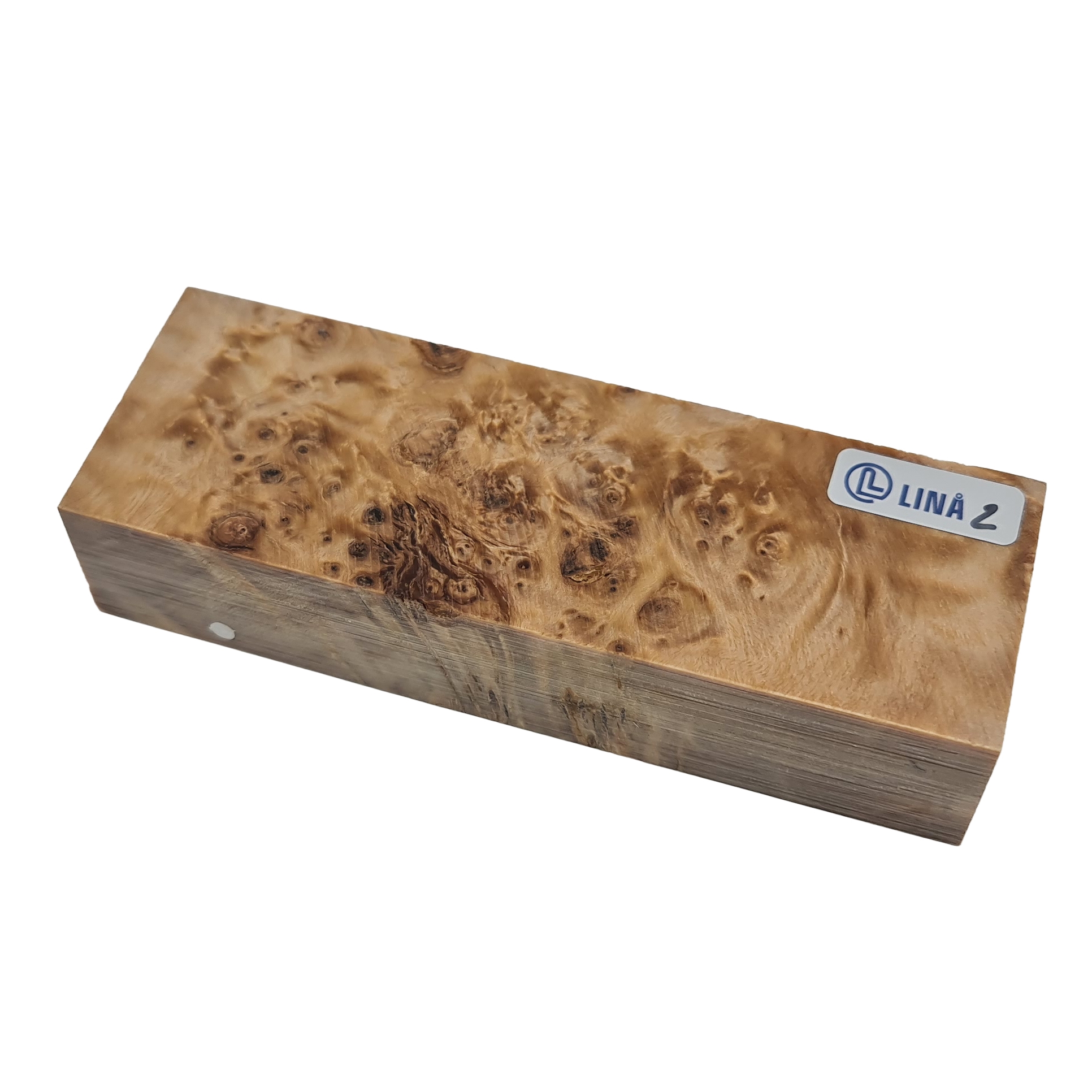Dette treemnet er et Masterpiece, spesielt utvalgt på grunn av sine usedvanlig vakre mønstre og farger. Emnet er laget av poppelknute, som allerede er kjent for sin dekorative og livlige årestruktur med naturlige knuter og variasjoner, men akkurat denne klossen skiller seg ut med et ekstraordinært spill i både kontraster og dybde. Knutedannelsene gir et uttrykk som er helt unikt, og materialet egner seg derfor spesielt godt til prosjekter der estetikken står i sentrum – som eksklusive knivskaft, smykker eller håndtak der man ønsker noe helt spesielt.