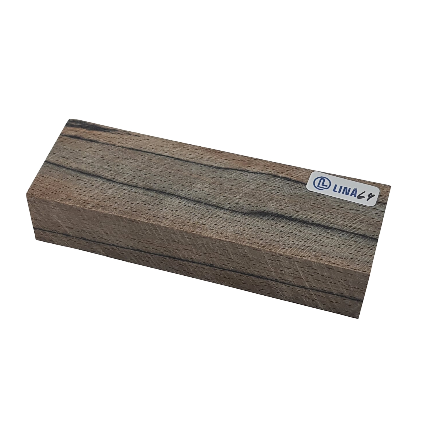 Stabilisert treemne til knivskaft – Bøk med tydelige mørke avtegninger etter råteskader (stabilisert av Raffir)