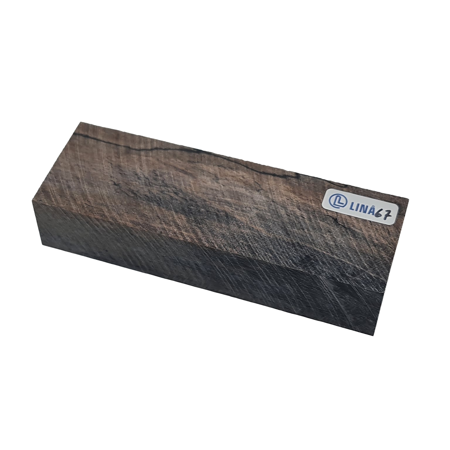 Den naturlige strukturen og de mørke avtegningene gjør hvert emne visuelt unikt og spesielt godt egnet til prosjekter der man ønsker et mer markant og individuelt uttrykk – for eksempel knivskaft, smykker eller mindre håndtak.