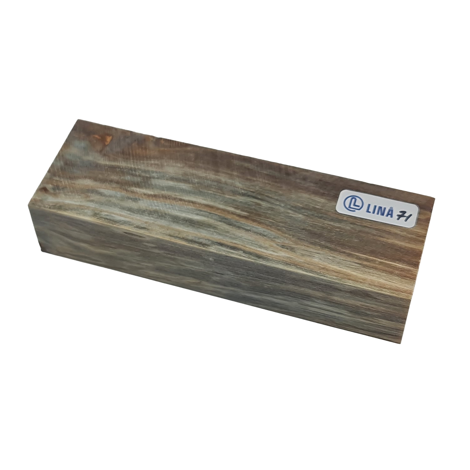 Stabilisert treemne til knivskaft – Bøk med tydelige mørke avtegninger etter råteskader (stabilisert av Raffir)
