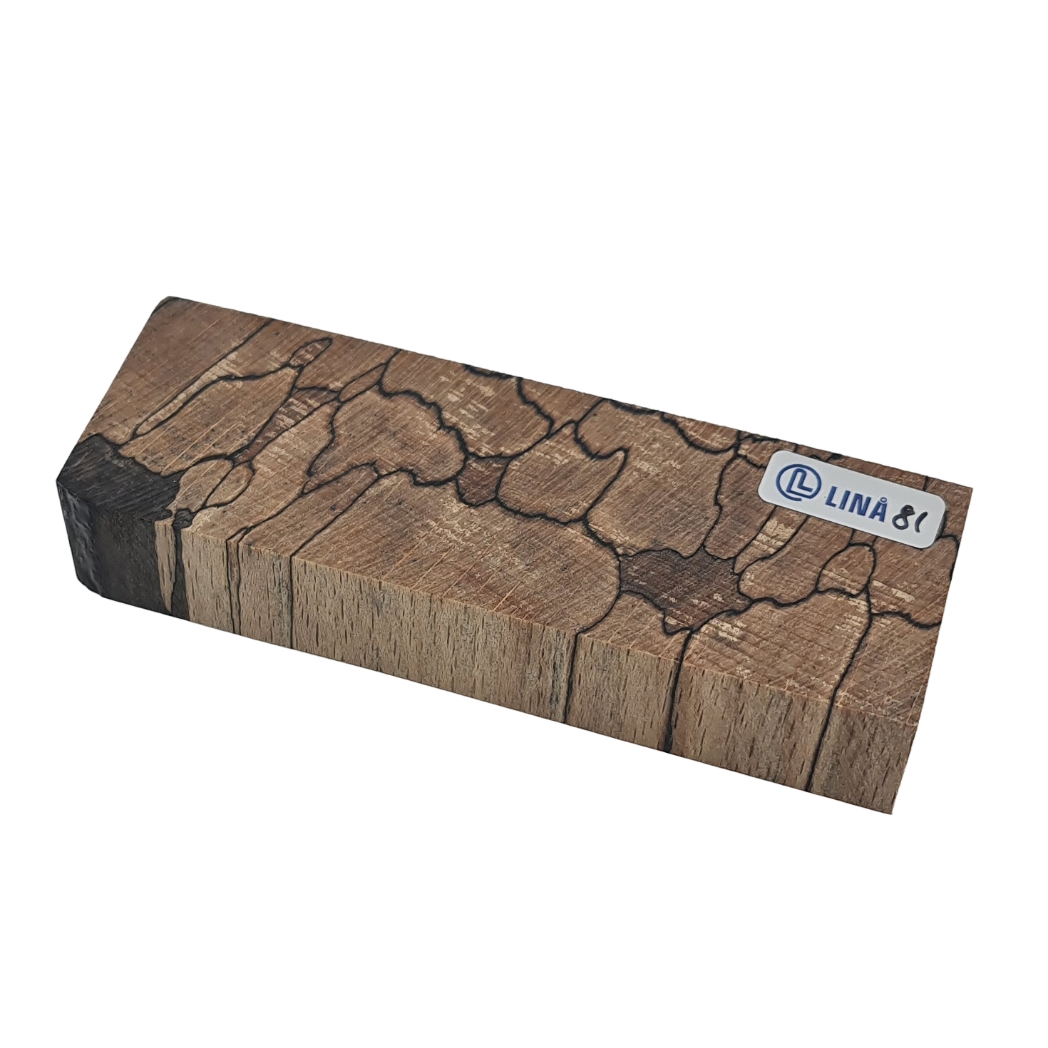 Stabilisert treemne til knivskaft – Bøk med tydelige mørke avtegninger etter råteskader (stabilisert av Raffir)