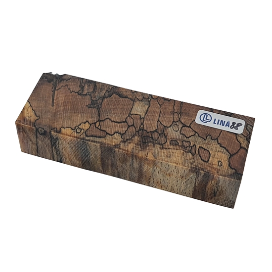 Stabilisert treemne til knivskaft – Bøk med tydelige mørke avtegninger etter råteskader (stabilisert av Raffir)