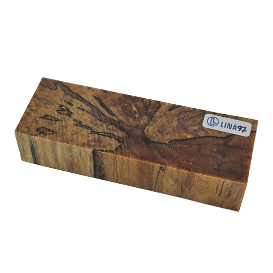 Stabilisert treemne til knivskaft – Bøk med tydelige mørke avtegninger etter råteskader (stabilisert av Raffir)