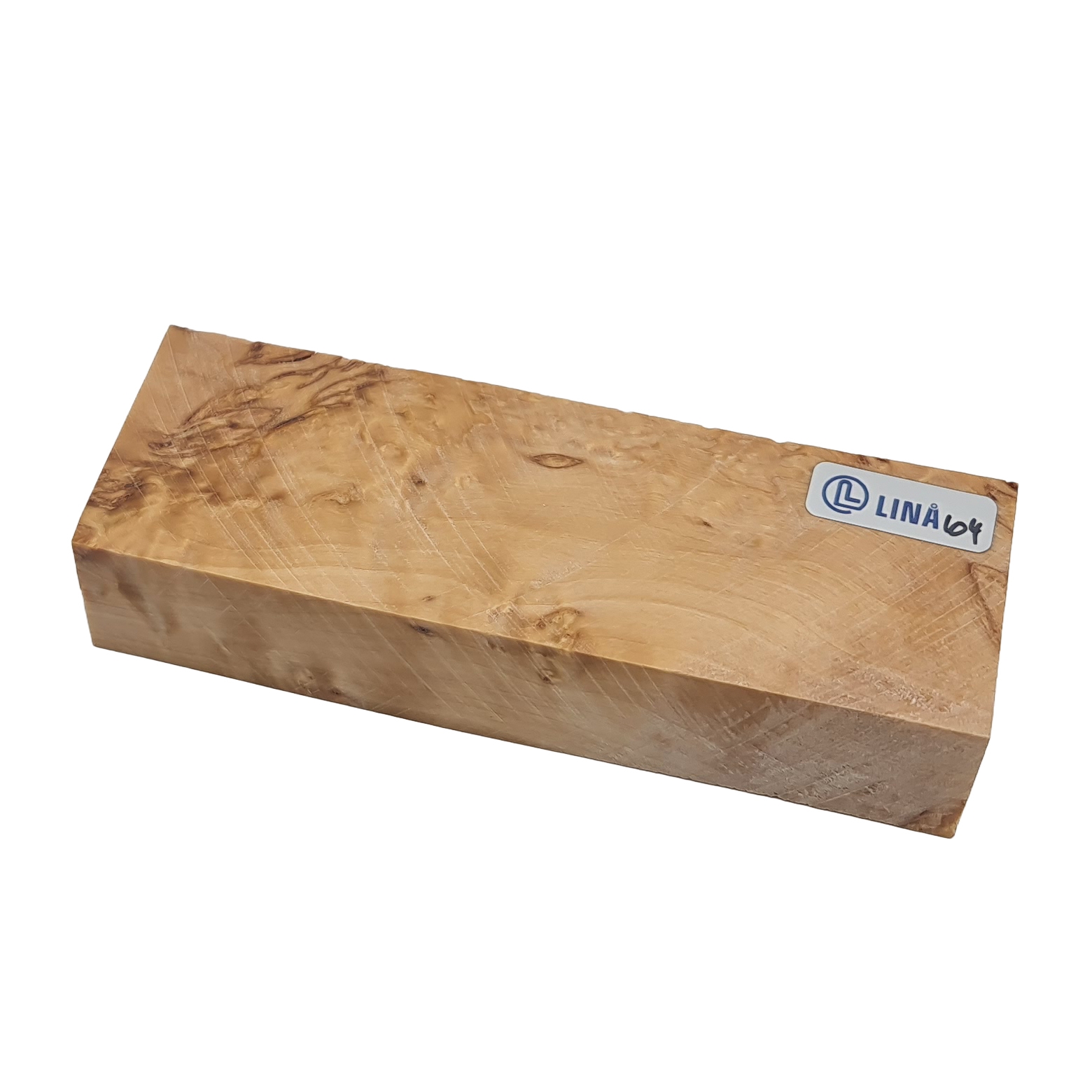 Dette treemnet er fremstilt av nøye utvalgt masurbjørk, som er kjent for sin livlige og karakterfulle årestruktur med små knuter, bølger og et tydelig spill i overflaten. Den naturlige strukturen gir et dynamisk og dekorativt uttrykk, hvor hvert emne fremstår som helt unikt. Dette gjør materialet særlig godt egnet til prosjekter der både estetikk og håndverk står i fokus – for eksempel knivskaft, smykker eller mindre grep.