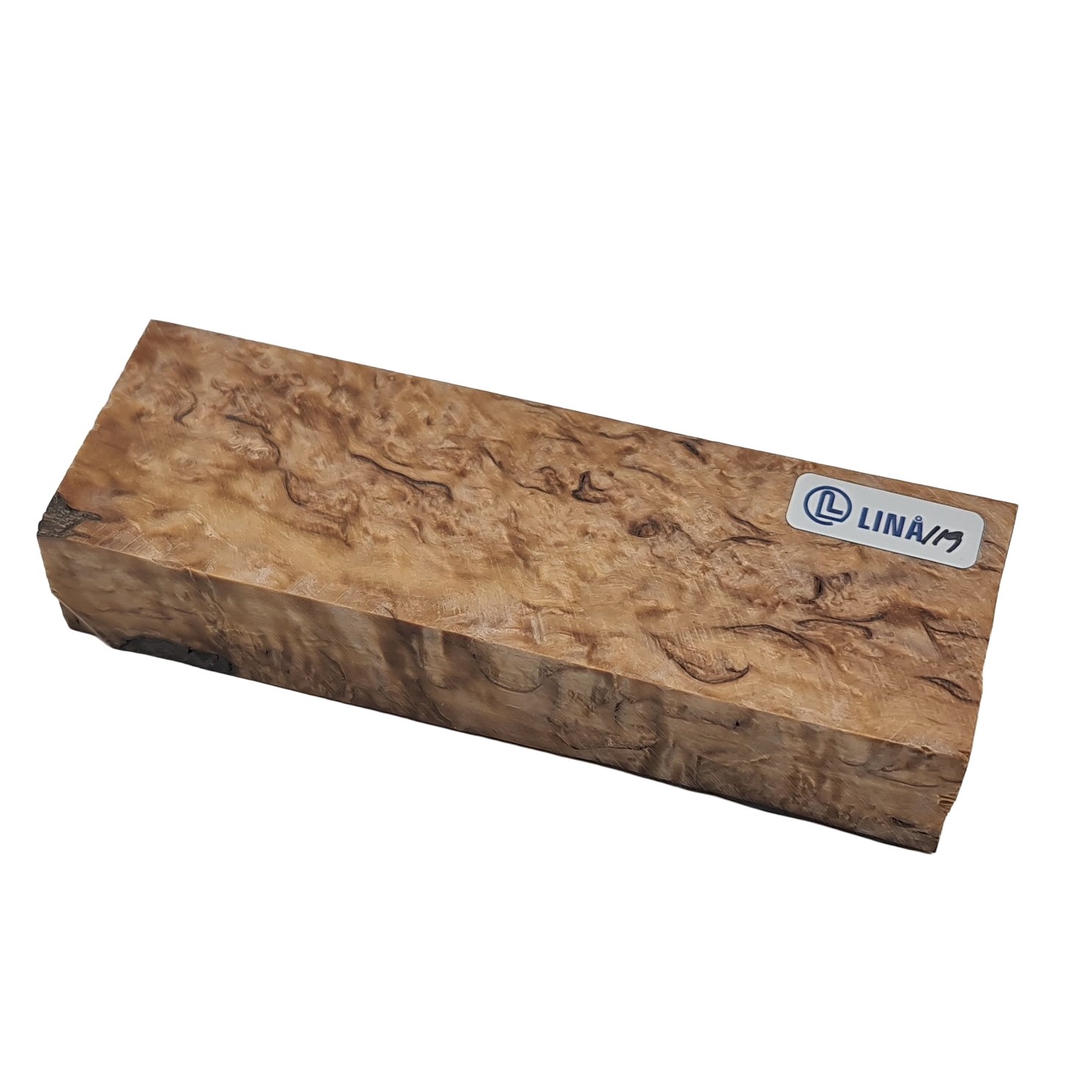 Dette treemnet er fremstilt av nøye utvalgt masurbjørk, som er kjent for sin livlige og karakterfulle årestruktur med små knuter, bølger og et tydelig spill i overflaten. Den naturlige strukturen gir et dynamisk og dekorativt uttrykk, hvor hvert emne fremstår som helt unikt. Dette gjør materialet særlig godt egnet til prosjekter der både estetikk og håndverk står i fokus – for eksempel knivskaft, smykker eller mindre grep.