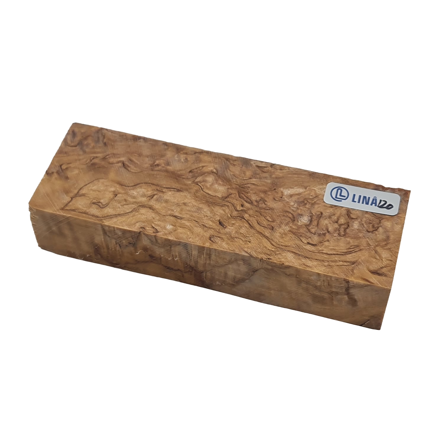 Dette treemnet er fremstilt av nøye utvalgt masurbjørk, som er kjent for sin livlige og karakterfulle årestruktur med små knuter, bølger og et tydelig spill i overflaten. Den naturlige strukturen gir et dynamisk og dekorativt uttrykk, hvor hvert emne fremstår som helt unikt. Dette gjør materialet særlig godt egnet til prosjekter der både estetikk og håndverk står i fokus – for eksempel knivskaft, smykker eller mindre grep.