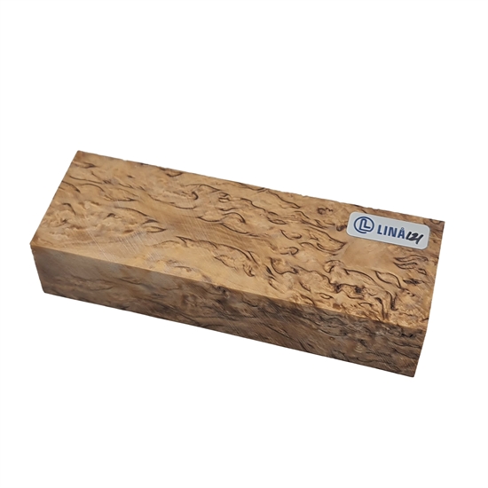 Dette treemnet er fremstilt av nøye utvalgt masurbjørk, som er kjent for sin livlige og karakterfulle årestruktur med små knuter, bølger og et tydelig spill i overflaten. Den naturlige strukturen gir et dynamisk og dekorativt uttrykk, hvor hvert emne fremstår som helt unikt. Dette gjør materialet særlig godt egnet til prosjekter der både estetikk og håndverk står i fokus – for eksempel knivskaft, smykker eller mindre grep.