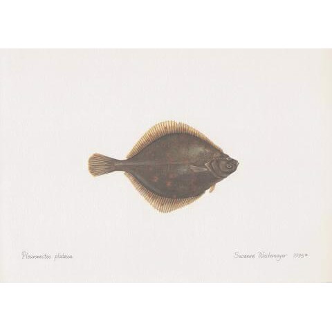 Rødspetten, som også har navnet Pleuronectes platessa, er en flatfisk som lever i danske farvann og som mange dansker setter pris på sammen med nypoteter og persillesaus på en varm sommerdag. Litografiet vil derfor være fin å ha hengende på kjøkkenet, som en fin kjøkkenplakat i retrostil.