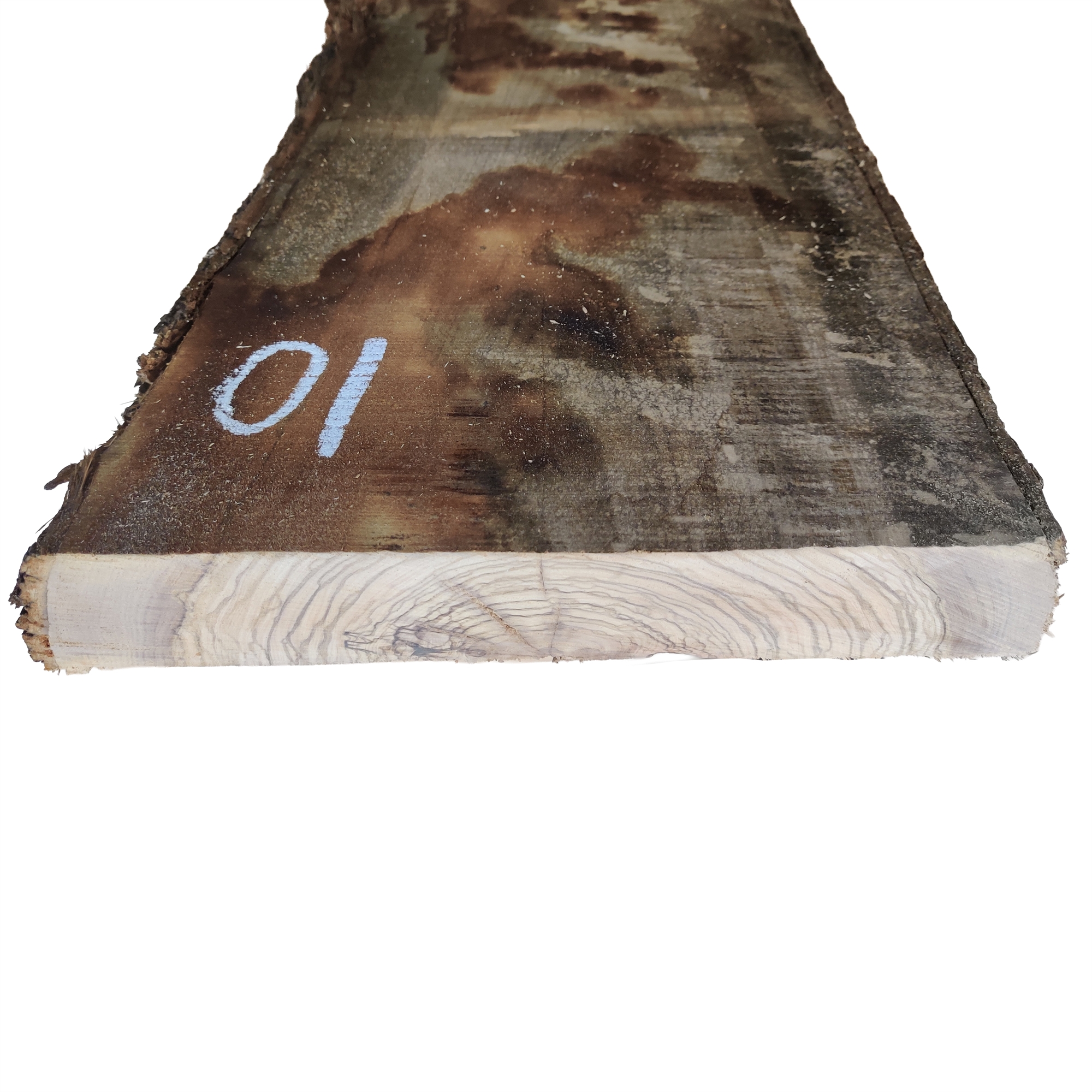 Olivenplankene på lager er ovnstørket, og derfor kan overflaten fremstå som mørk og lett grålig. Dette gjelder kun det ytterste laget. Når du begynner å bearbeide treverket, kommer den karakteristiske fargen og strukturen raskt tydelig frem.