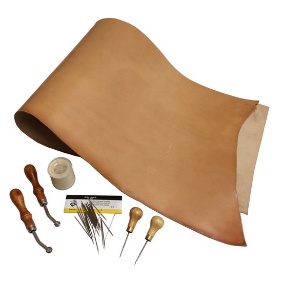 Det er materialer til å kunne sy ca. 20 knivslirer.