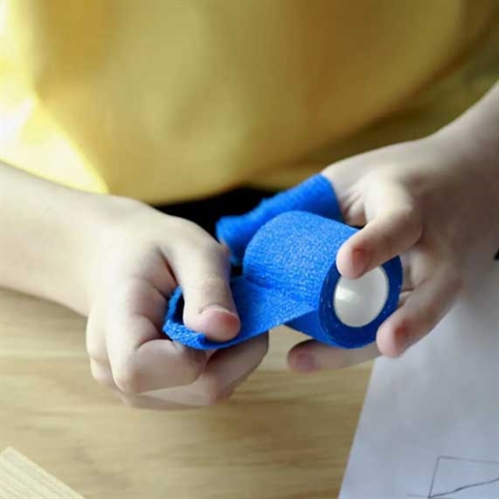 Tapen vikles rundt fingrene i ett eller to lag og klippes deretter av.