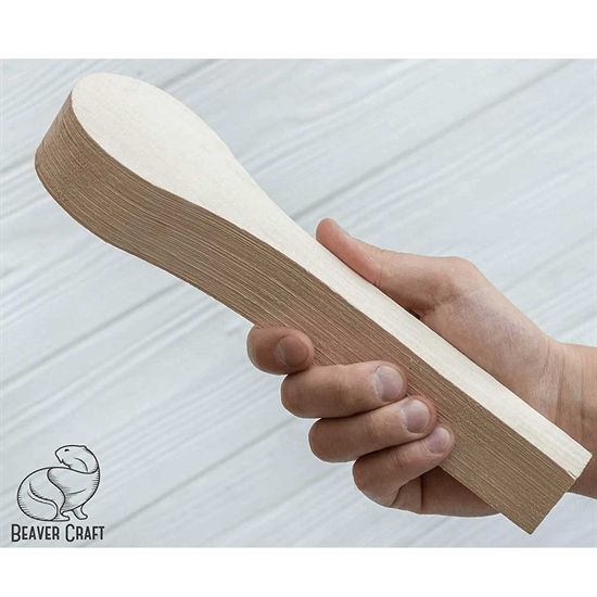 Dette skjeemnet er laget av lett og myk lind. Det har en tilpasset form, du trenger bare å designe og skjære ferdig skjeen.