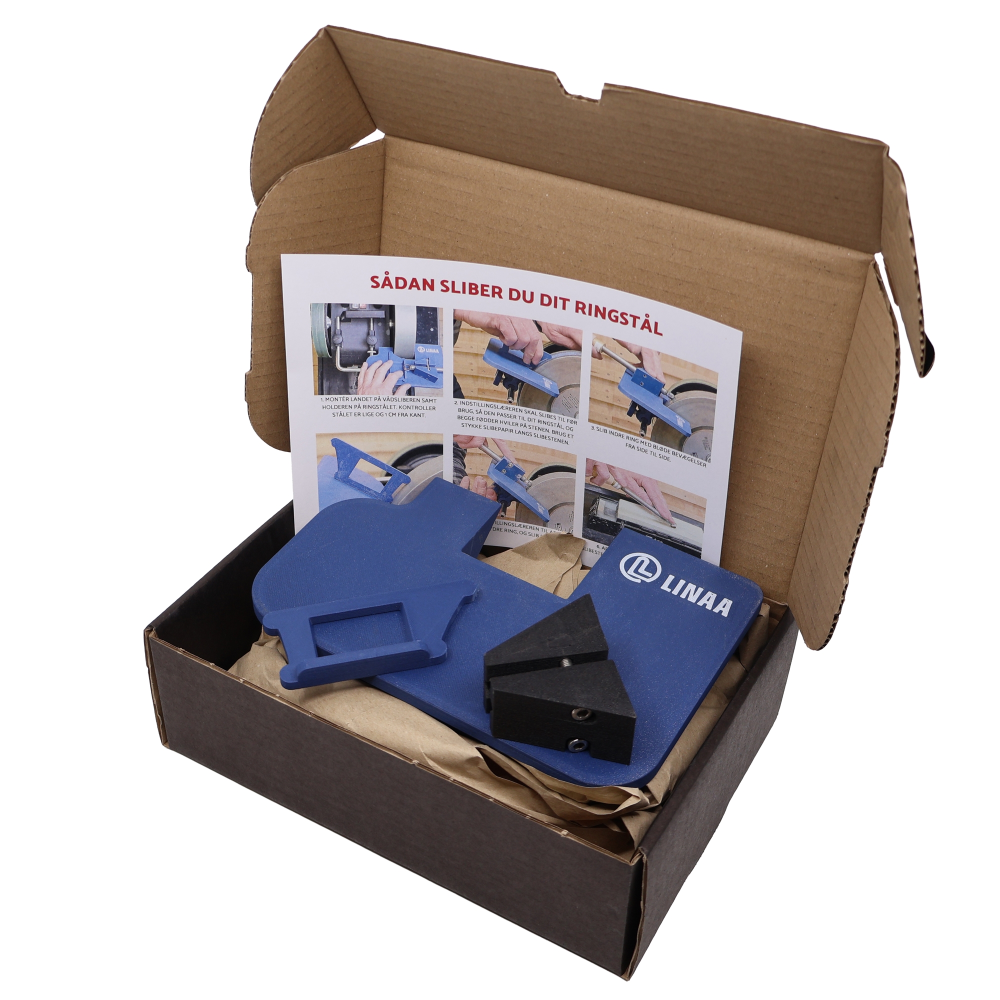 Veiledning på dansk følger med når du kjøper slipjiggen.