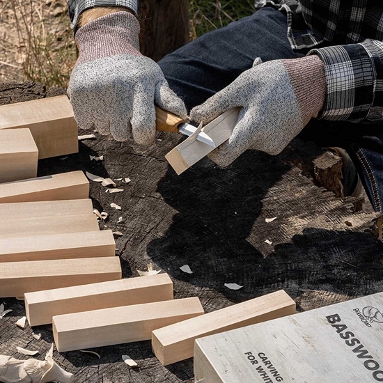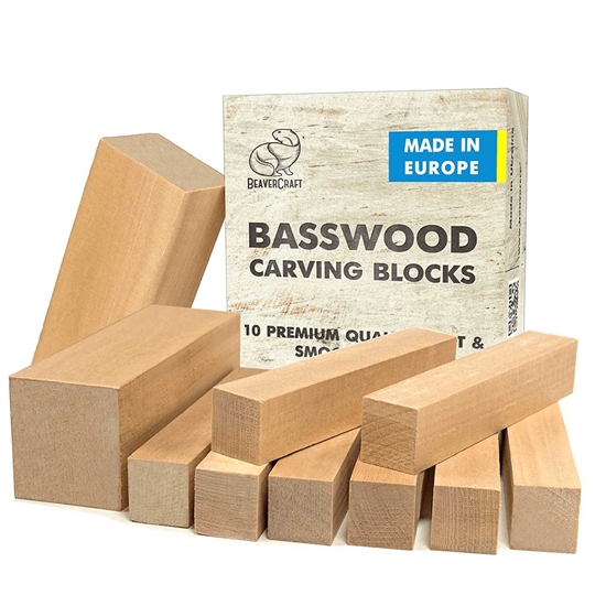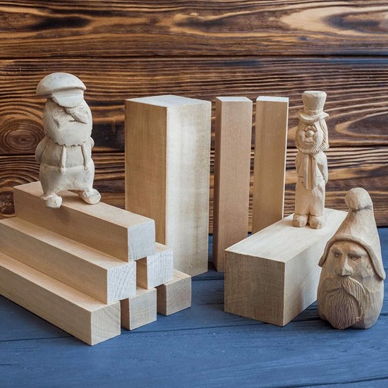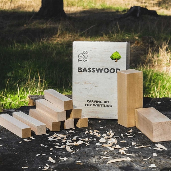 Snittepakken består av 10 treklosser i myk lind.