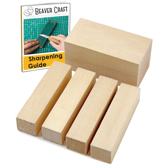 Snittepakken består av 4 små treklosser og 1 stor trekloss i myk lind.
