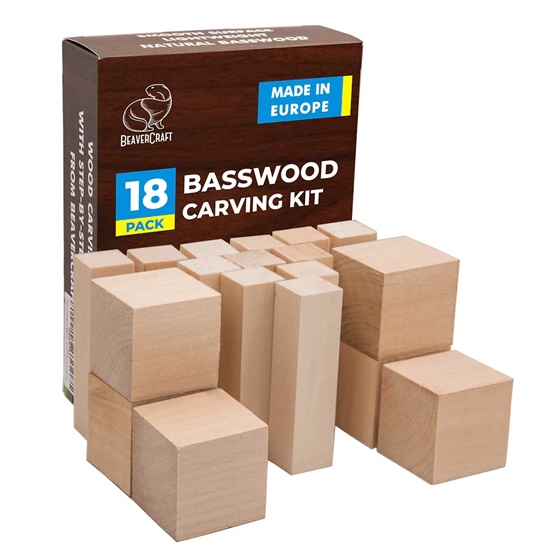 Snittepakken består av 18 treklosser i 2 forskjellige størrelser. Alle i lind.