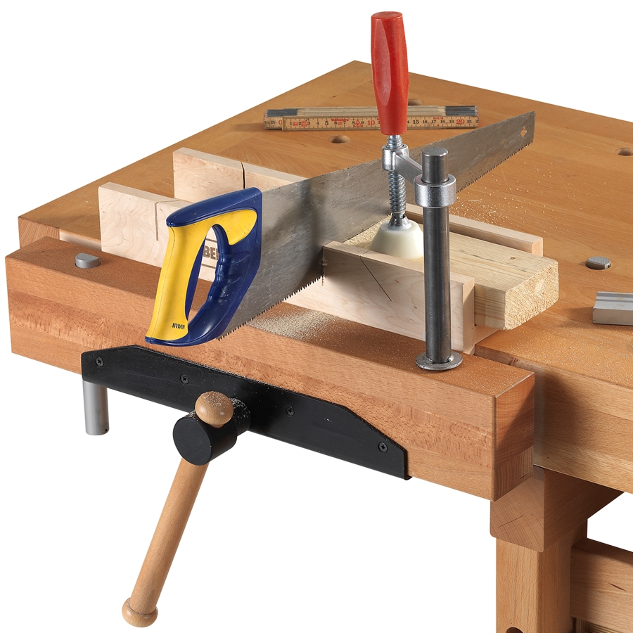 Gjør det mulig å klemme et arbeidsstykke mot toppen av benkeplaten.