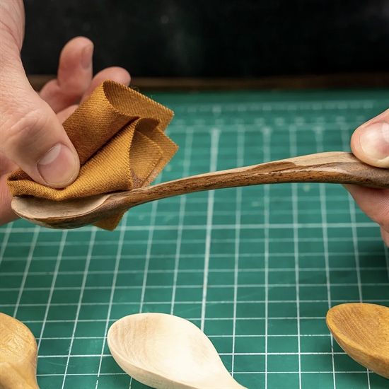 Kirsebærtre har en varm rødbrun kjerne og en jevn, glatt struktur med rette fibre. Det er behagelig å arbeide i og gir en rolig og fin overflate som utvikler en vakker glød over tid. Morbær er et verdifullt løvtre med en gyllen tone. Det er forholdsvis lett å forme, pusse og polere og gir en tett og slitesterk skje med et levende fargespill. Europeisk valnøtt er kjent for sin styrke og motstand mot flising. Den kan poleres til en dyp og elegant finish der årringene kommer tydelig frem. Lind er lyst og jevnt i strukturen med en matt glans. Det har jevn tetthet og egner seg spesielt godt for både nybegynnere og erfarne, fordi det er lett å spikke rent og kontrollert i.