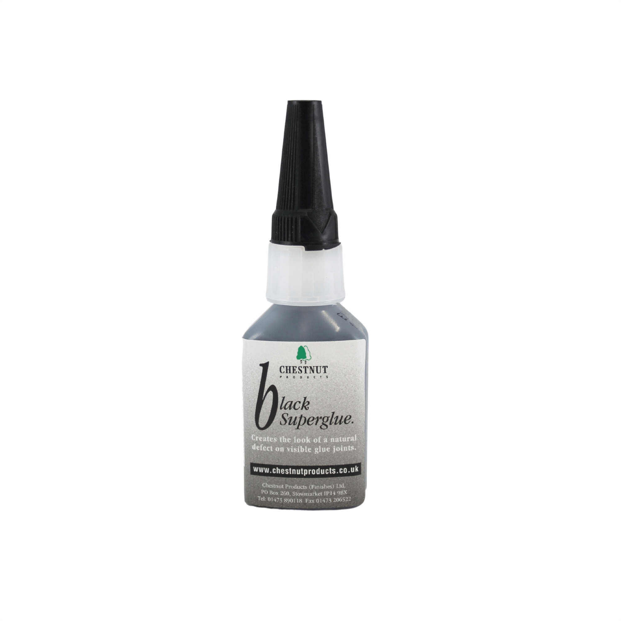 En ny utgave av vårt CA-superlim, dette er en tykk, svart lim med de samme sterke egenskapene som vårt vanlige superlim, men med fordelen at det er ideelt når limfugen er synlig. Når limet har herdet, etterligner det naturlige feil og strukturer i treet, noe som gjør at skjøten nesten blir en dekorativ del av treets uttrykk. Den svarte fargen gjør limet spesielt godt egnet til å fylle sprekker i mørke tresorter som valnøtt og mahogni, samt i eksotiske materialer som mammutelfenben, hvor det både stabiliserer og fremhever treets eller materialets naturlige skjønnhet.
