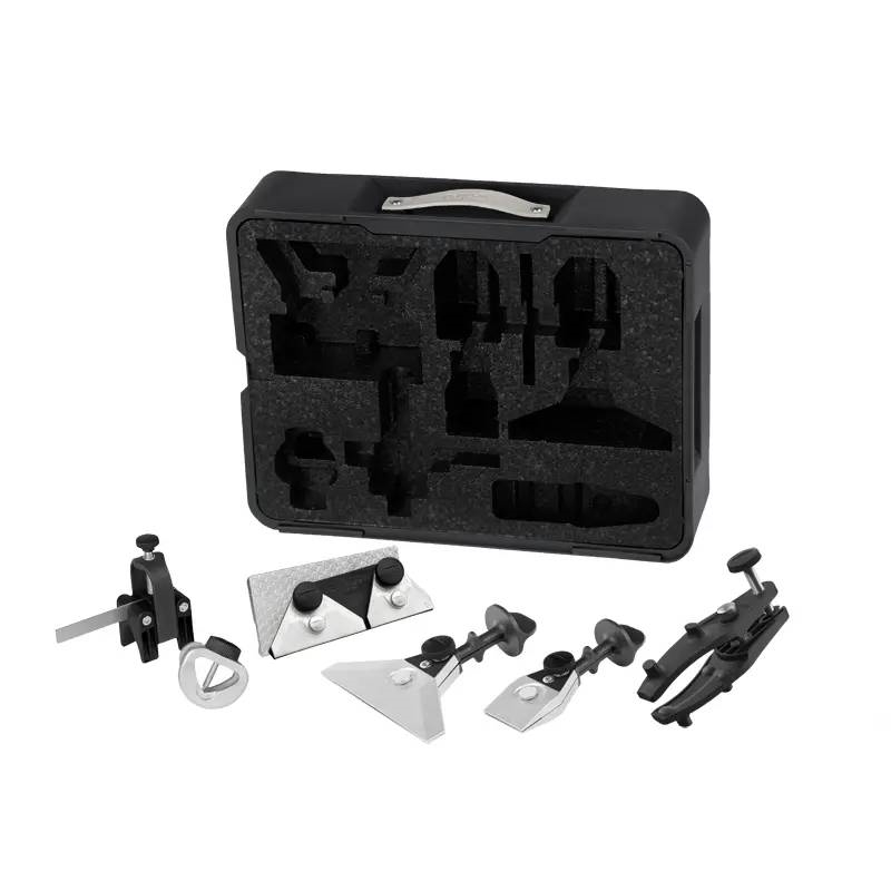 Oppbevaringsetuiet er laget av et holdbart materiale og har et skyvelokk som holder alt samlet på en rolig og praktisk måte. HTK-1006 består av flere velprøvde Tormek-komponenter, blant annet TC-800-etuiet, HTK-00-oppbevaringsbrettet samt jiggene KJ-45 og KJ-140 for sentrert knivsliping. I tillegg følger SVM-00 for små kniver, SC-60 for sakser, AX-40 for økser og SVS-38 for kort verktøy.
