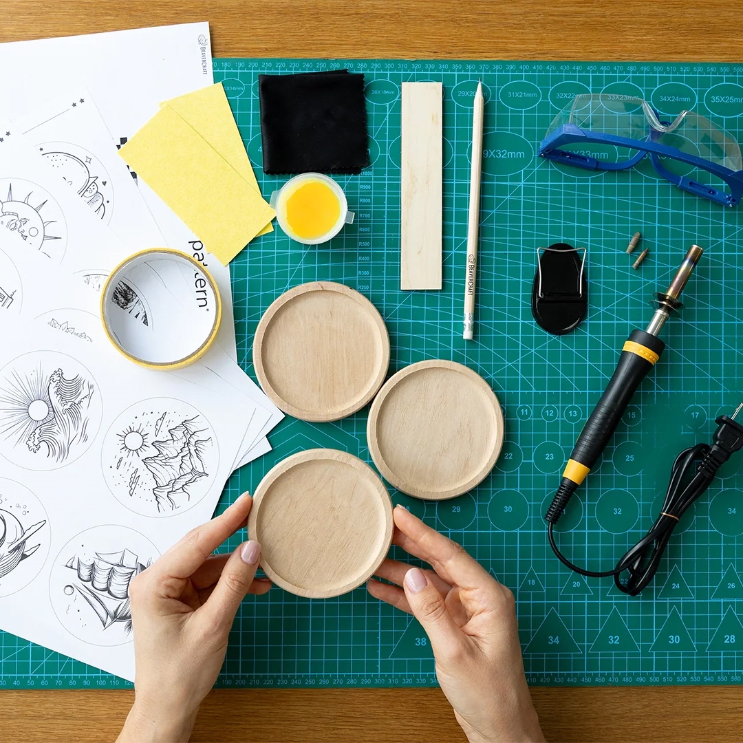 Med dette settet kan du lage dine egne lune og stemningsfulle trebrikker med et personlig preg. Prosessen er enkel å komme i gang med og gir ro og fordypning underveis. Tredbrenning er mer enn et hobbyprosjekt – det er en meditativ arbeidsform hvor motivet gradvis vokser frem i treets naturlige struktur. Du blir veiledet steg for steg, slik at du kan arbeide trygt også som nybegynner.