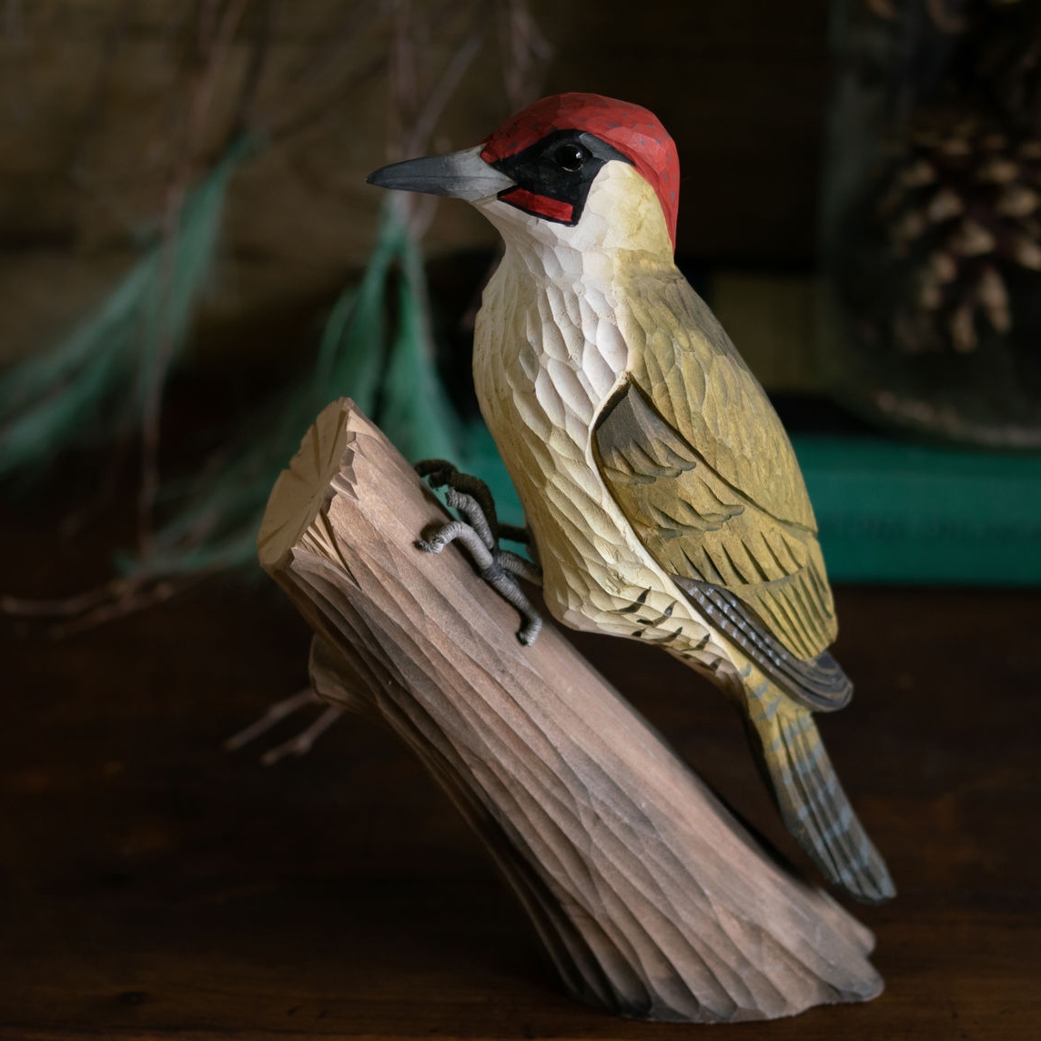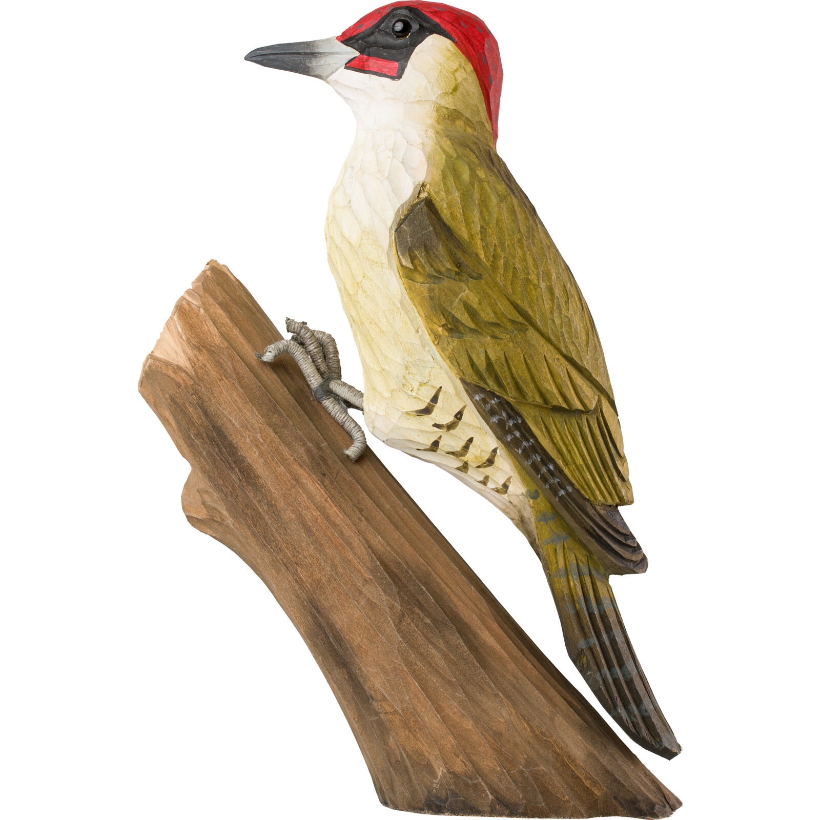 Spetten er naturtro, håndskåret og malt med vannbasert maling. Kan plasseres både innendørs og utendørs.