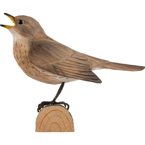 Naturtrogen handskuren näktergal i trä