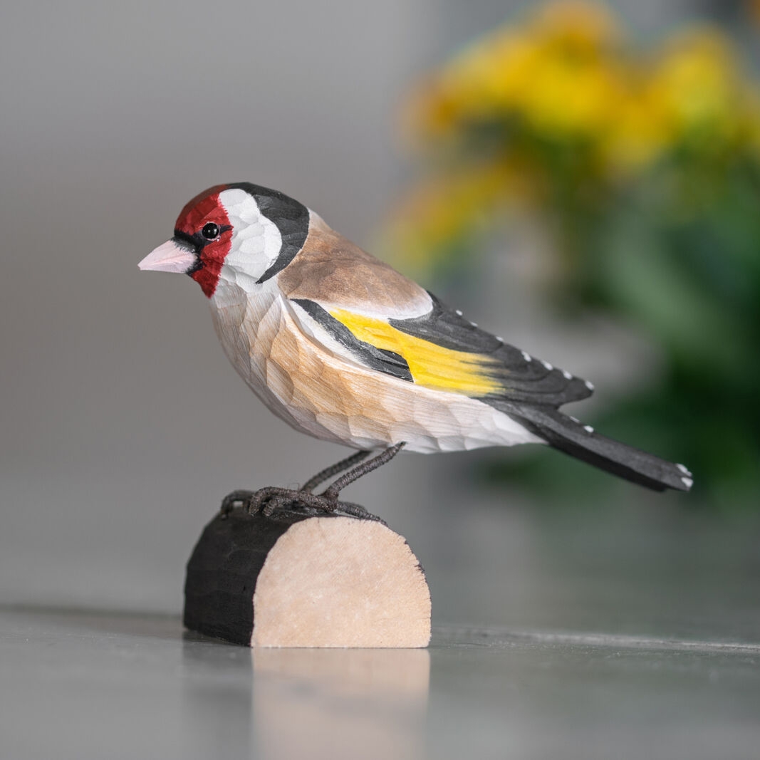 DecoBird Stillits er en naturtro tredyr, håndskåret og håndmalt med vannbasert maling. Med sine eksotiske og livfulle farger er stillitsen lett å kjenne igjen.