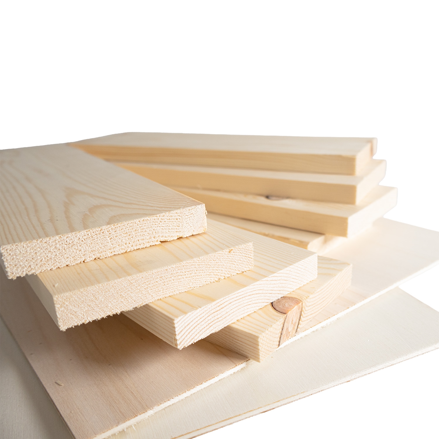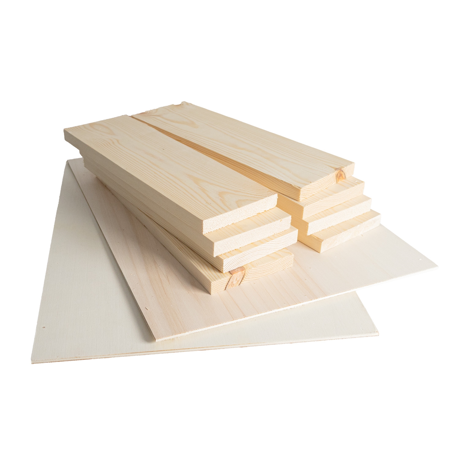 En liten trepakke for barn gjør det enkelt å komme i gang med å bygge og leke med tre. Materialet er allerede høvlet og kappet i håndterbare biter, slik at barnet kan begynne med en gang – uten at en voksen først må sage eller forberede materialet.