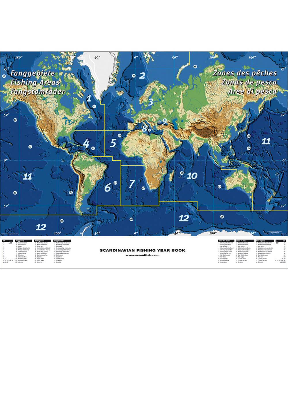 Navnene på fiskeområdene er angitt på bl.a. dansk, engelsk og tysk.